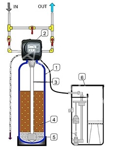 Universal filter column MIX deferrizes, softens water and at the same time removes calcium ions, which create the "hardness" of water, iron and manganese.