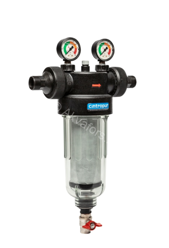 Made entirely from top quality synthetic material, CINTROPUR filters are ideal for use with food products and drinking water. The CINTROPUR vane changes the liquid flow using centrifugal motion, forcing the larger particles down into the lower bowl, depending on the chosen filter sleeve micron-size.
