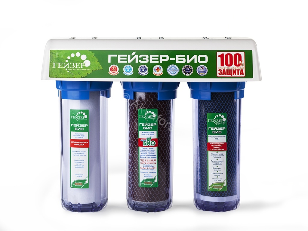 The BIO Geyser filter for superhard water consists of 3 cartridges: