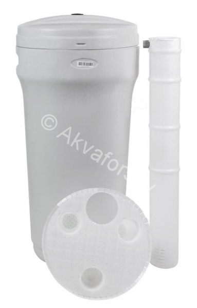 The tank consists of a body with a lid, a salt grille, a brine shaft, inside which is mounted a suction system, a ball shut-off valve and a fitting for connecting the salt tank with the control valve of the softener.