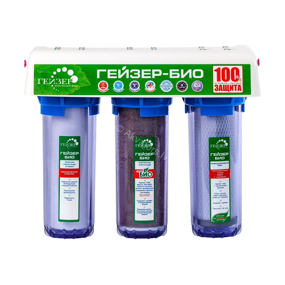 Geyser BIO serijos filtrai yra vienintelės filtrų sistemos Rusijos rinkoje, gavusios atitikties sertifikatą pagal GOST R sistemą: