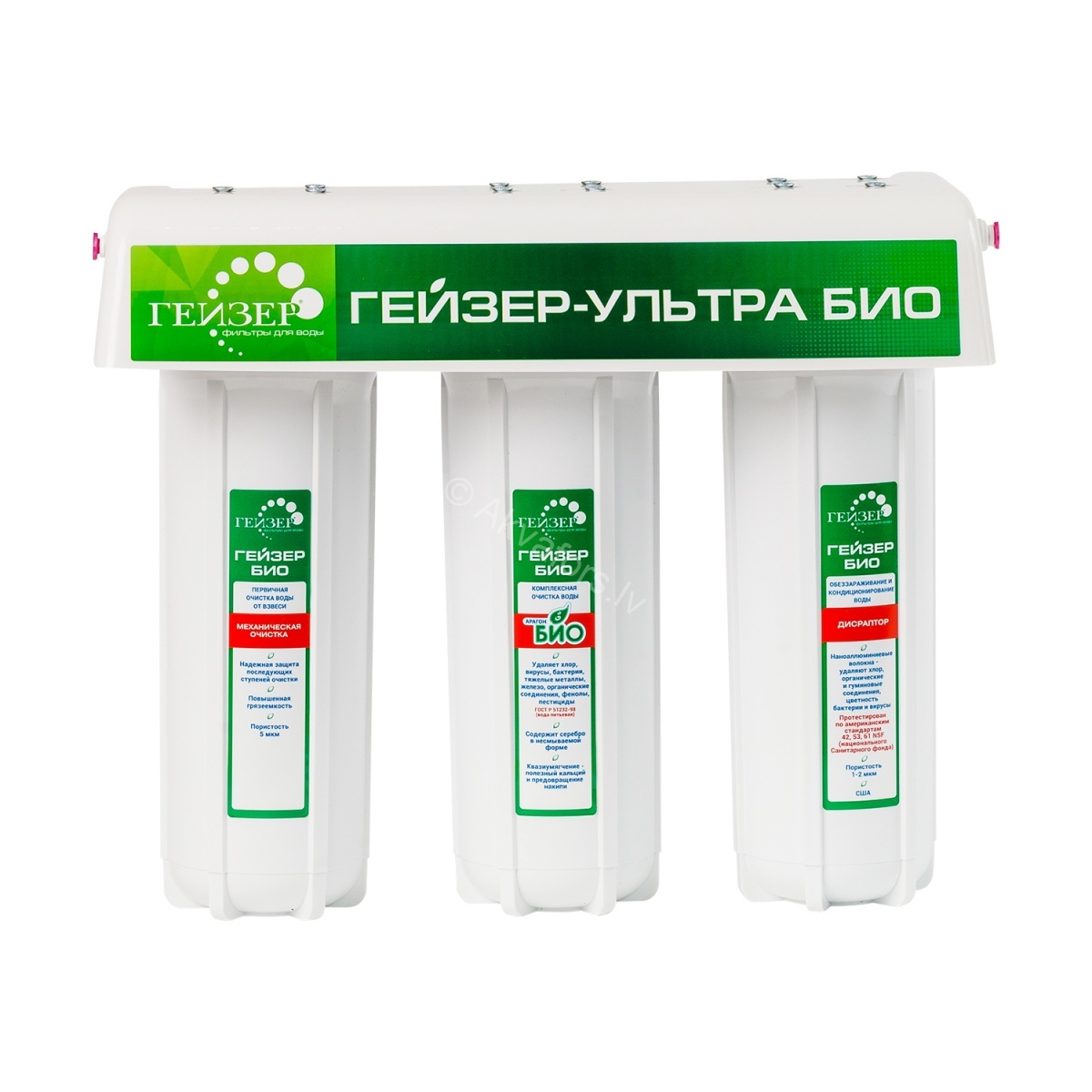 Geyser Ultra BIO serijos filtrai naudoja inovatyvią vandens valymo technologiją. Aragon-M BIO ir Disraptor kasečių derinys užtikrina aukščiausią įmanomą filtravimo kokybę, padidintą resursą, dvigubą resursą bakterijoms ir virusams šalinti, taip pat puikų gryno vandens skonį. Žmonėms ir aplinkai nėra kenksmingų teršalų. Filtro korpusas pagamintas iš maistinio plastiko ir gali atlaikyti penkis kartus didesnį slėgį nei darbinis slėgis.
