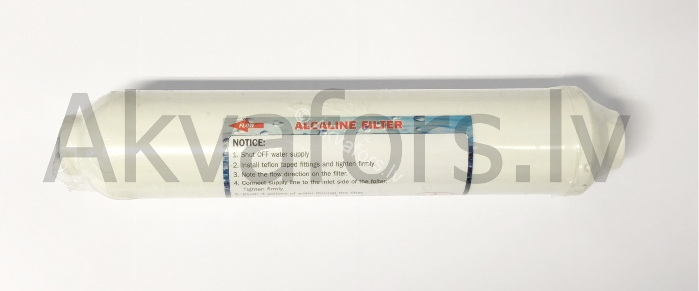 Алкалайновый картридж для системы обратного осмоса повышает pH-уровень воды до естественного для организма человека.