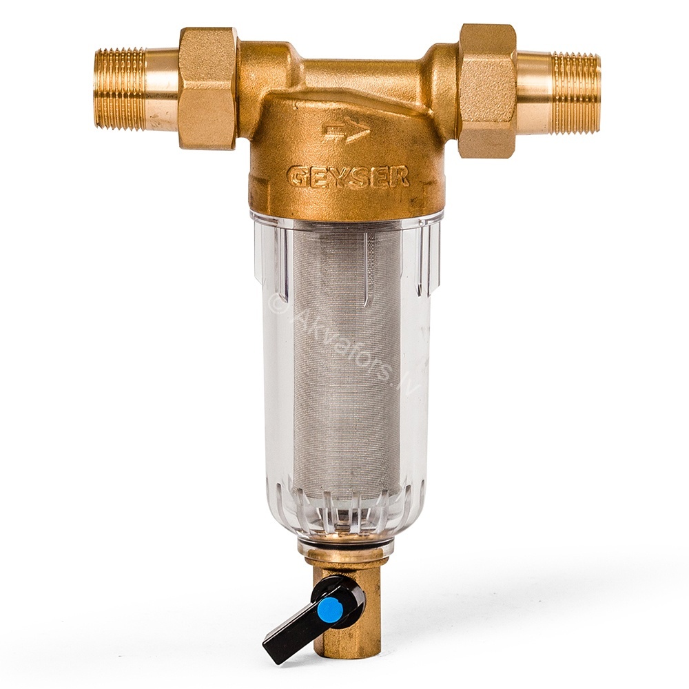 Фильтр механической очистки Гейзер 32666 для предварительной очистки холодной воды от механических примесей - частиц ржавчины, волокон пеньки, песчинок, защиты сантехники, бытовой техники подключенной к водопроводу.