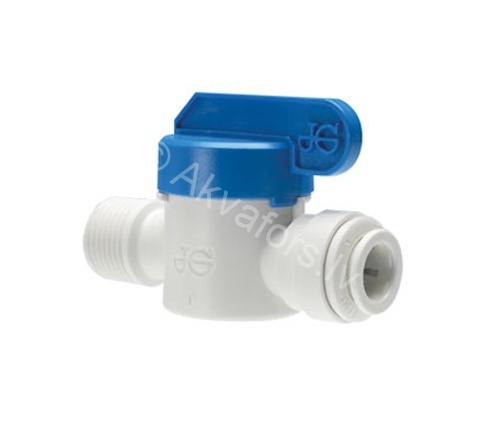Запорный клапан диаметром 8 мм из серии John Guest PP, изготовленный из полипропилена и снабженный уплотнениями из EPDM. Преимущество полипропиленовых фитингов состоит в том, что они более химически стойкие, чем фитинги из ацеталя.