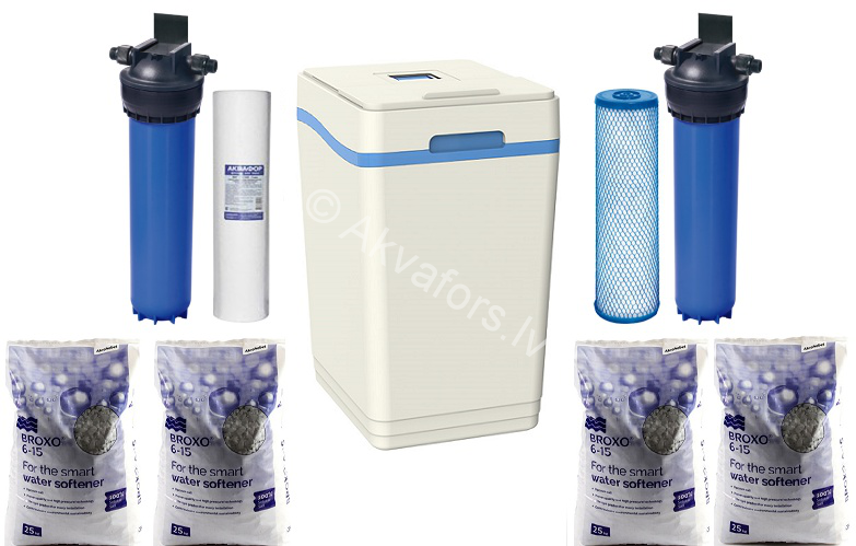2. Фильтр нового поколения AQUAPHOR WaterBoss 1000, система полностью очищает воду от железа, марганца до 15мг/л, и жесткость до 34 мг/л (17 mmol/l). Эта комплектация полностью уберет железо, известь, тем самым продлит срок службы стиральной и посудомоечной машины, бойлера. Система регенерируется (промывка) с помощью NaCl таблеток (таблетированная соль), которая не вредна для окружающей среды и канализации.Расход соли в разы меньше, чем у аналогичных фильтров колонного типа. В фильтр встроен компьютер, который программируется по Вашему анализу воды, это делает работу фильтра более экономичной.